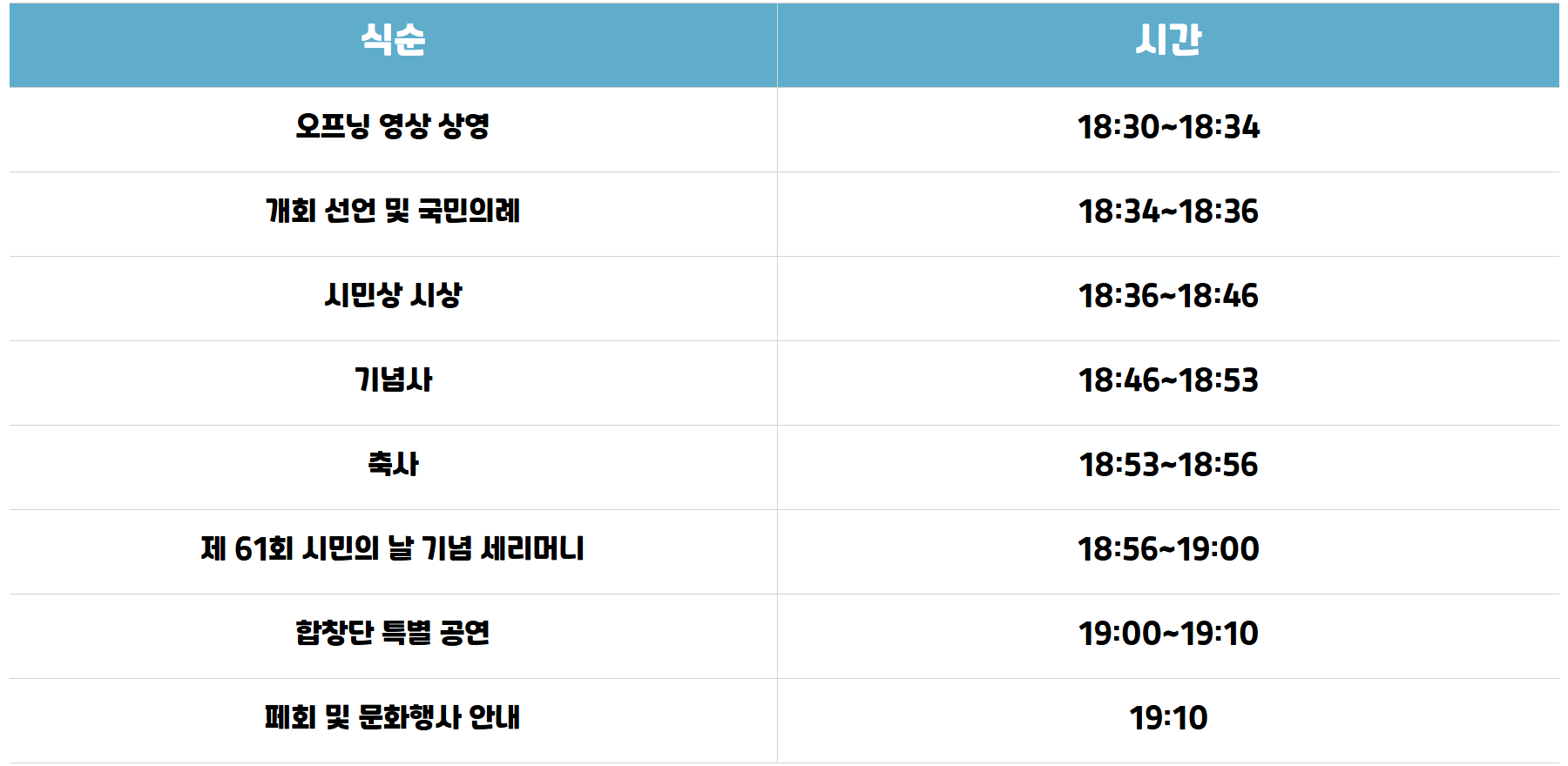 * 특별영상, 기념식, 시민상 특별공연 등